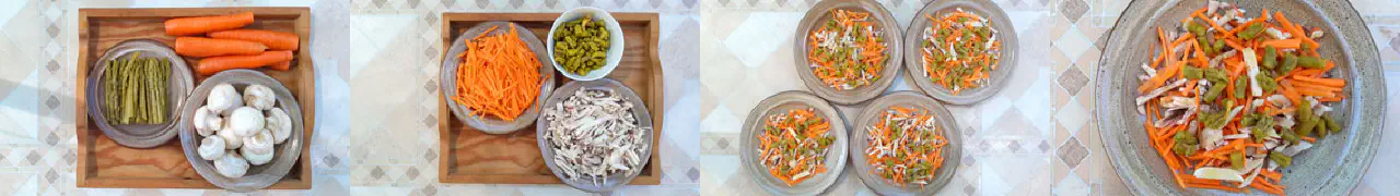 Bagatelle (bagatel) - salat med gulerod, svampe og asparges