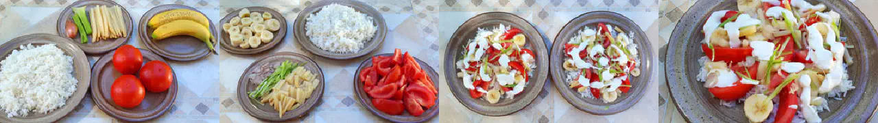 Canaille - salat med ris, tomater, asparges og banan