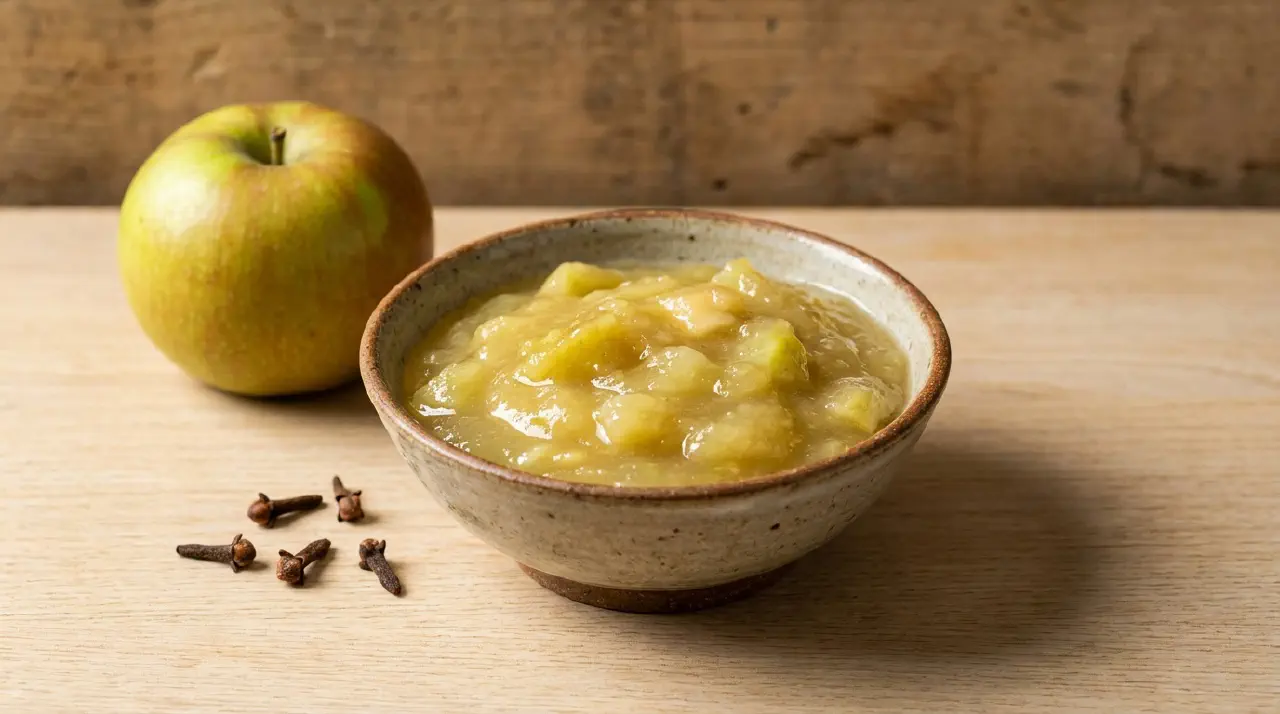 En traditionel britisk og irsk æblesauce lavet med Bramley-kogeæbler, der falder sammen til en grov puré under kogning. Let krydret med nelliker og afsluttet med smør. Serveres varm ved siden af stegt flæskesteg, svinekotelet eller blodpølse.