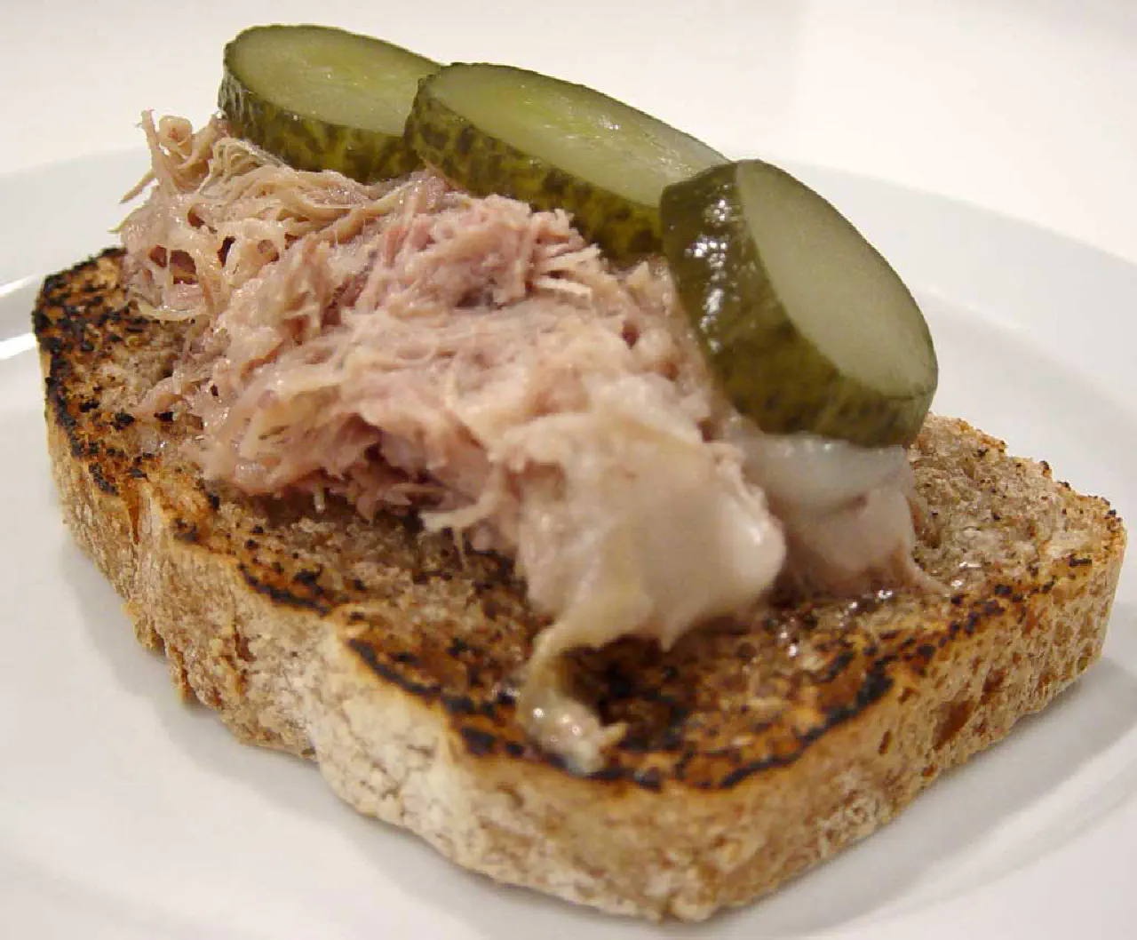 Rilette på ristet brød med lidt surt. © kvalimad.dk