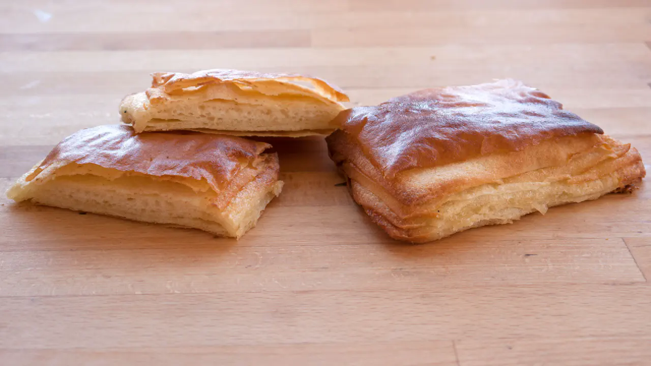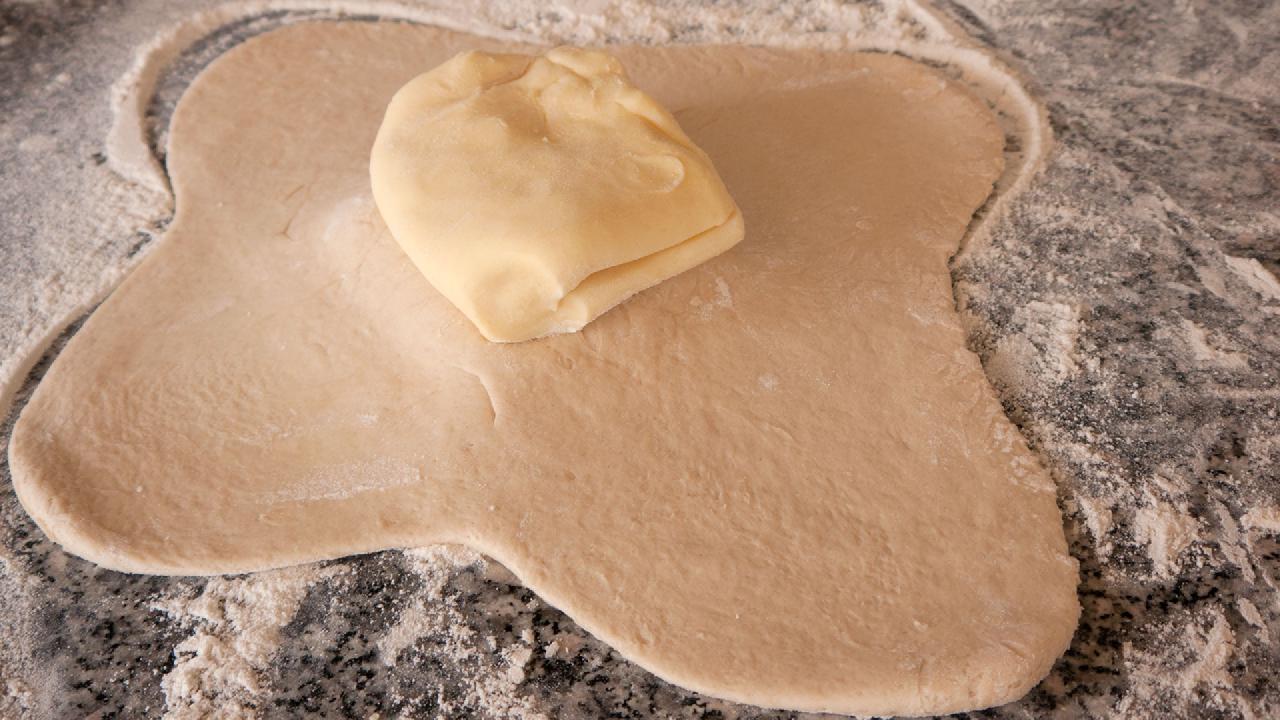 Få lag og meget smør giver en meget skallene skorpe og mere usammenhængende krumme, men de er absolut værd at spise, så det kan anbefales som begynder metode.