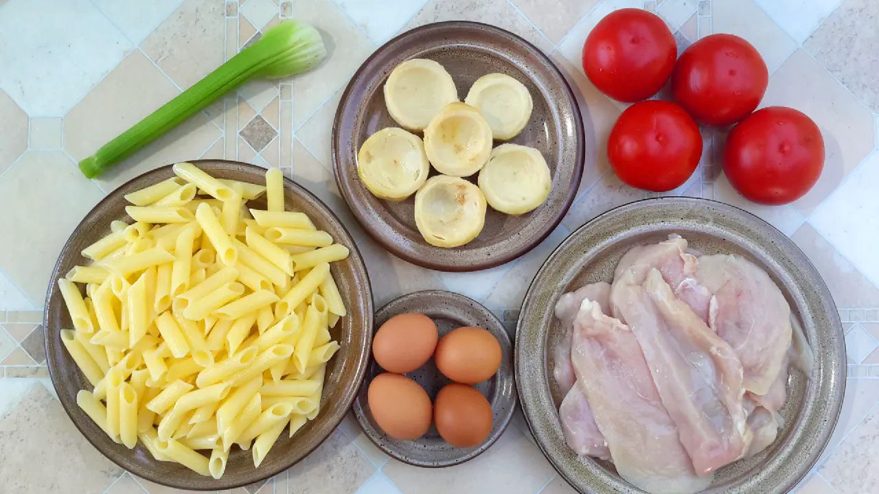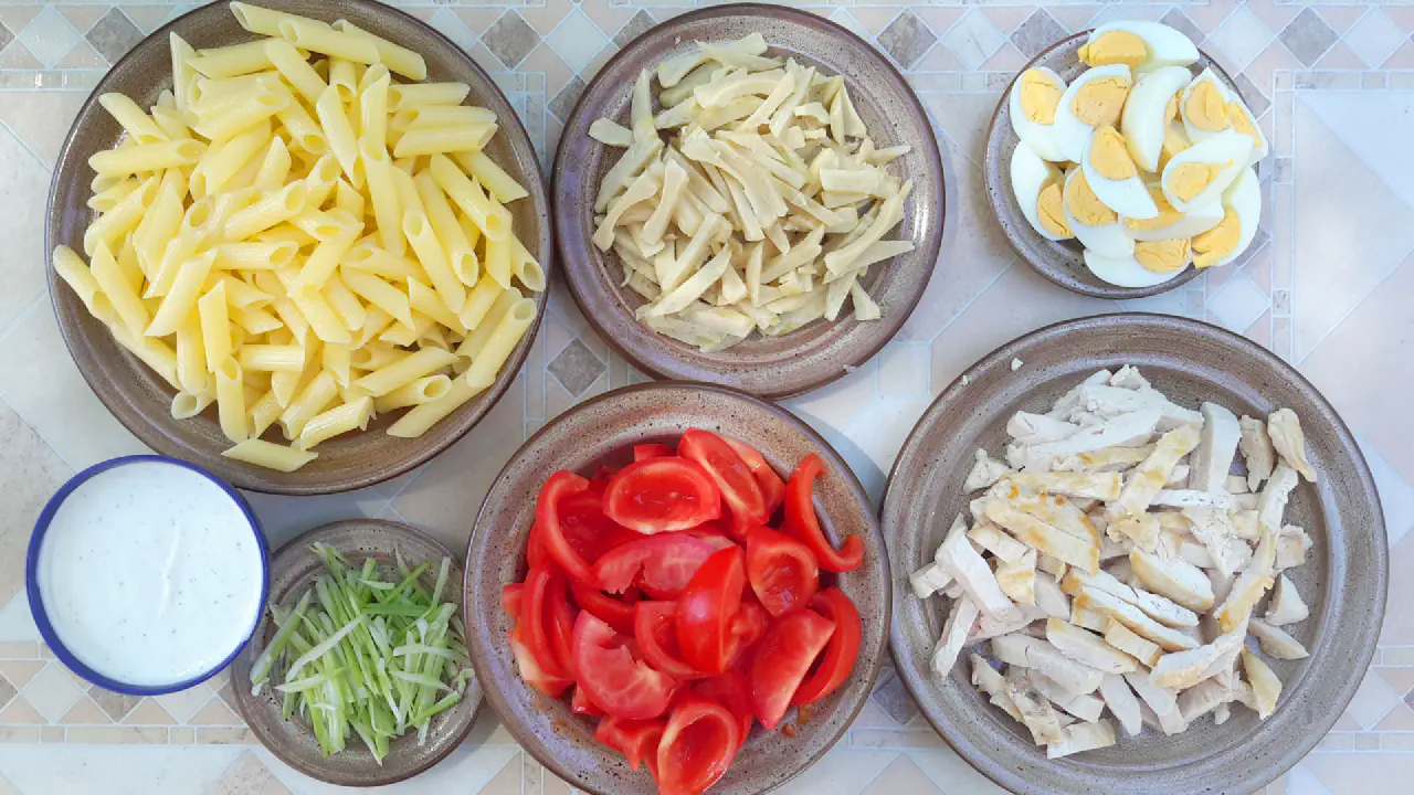 Bagration (general fra Napoleon tiden) - salat med pasta, tomat, æg, kylling og artiskok