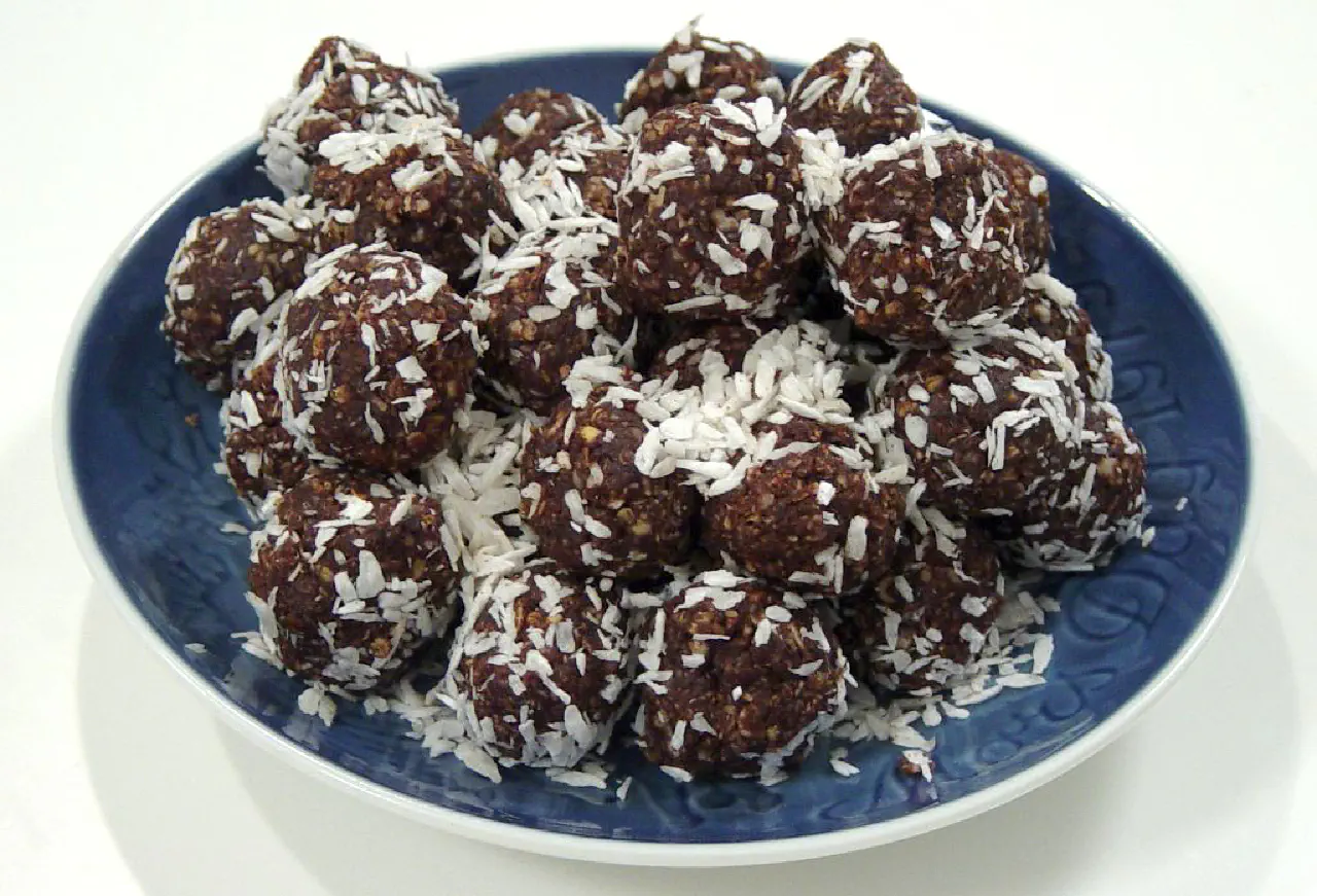 Rul dejen til små kugler og rul den i kokos.