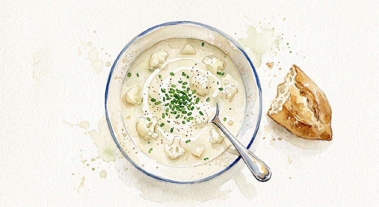 Blomkålssuppe er en mild, cremet suppe kogt på blomkål i suppe og mælk og afsluttet med æggeblomme. Den er let at lave og passer godt som forret eller let aftensmad. Muskat og hvid peber giver den en fin varme.