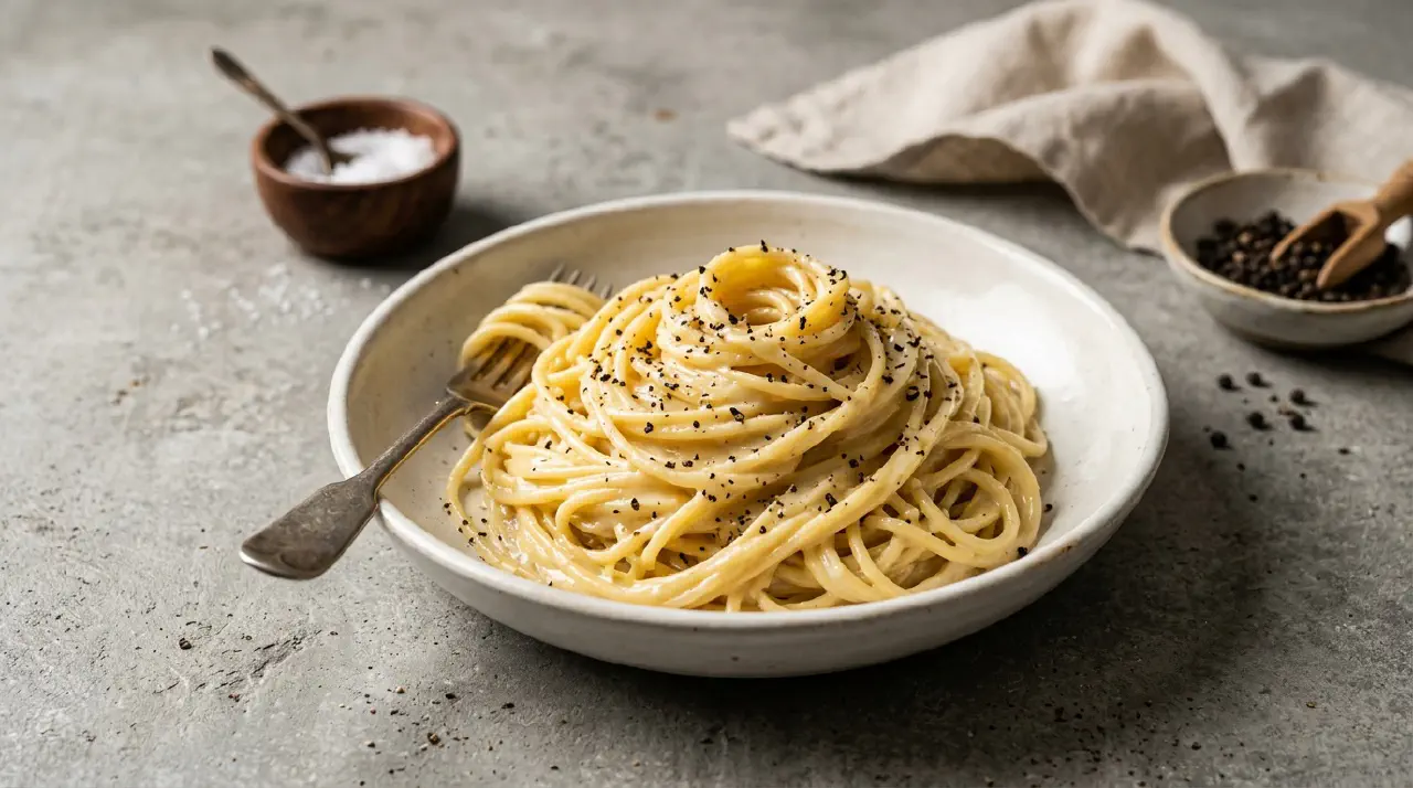 Cacio e pepe er en romersk pastaret lavet med tre ingredienser: pasta, Pecorino Romano og sort peber. Osten bearbejdes med varmt pastavand til en creme, som derefter kombineres med pastaen uden for varmen til en blank, pebret sauce. Ingen smør, ingen fløde, ingen olivenolie.