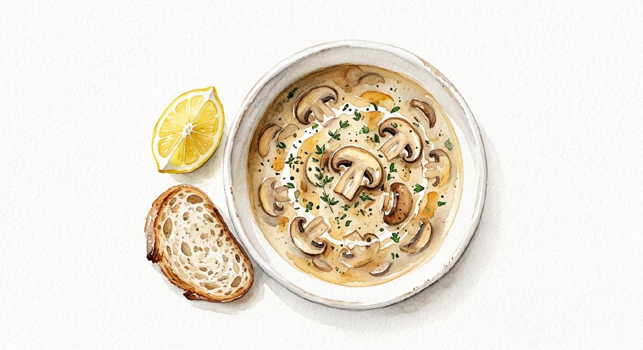 Champignonsuppe laves af svampe svitset med skalotteløg, jævnet med mel og suppe og afsluttet med fløde og citronsaft. Det er en nem suppe med god dybde, der fungerer som forret eller let frokost. Sherry er valgfri men giver suppen en fin afrunding.