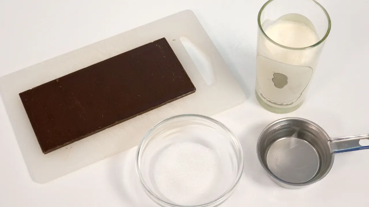 Video opskrift - Den franske kemiker og molekylær gastronom Hervé This har opfundet denne opskrift. Den stritter imod alt hvad man lærer om at behandle chokolade. Normalt er smeltet chokolade helt ødelagt hvis der kommer blot ganske få dråber vand i. Men i denne opskrift brugte Hervé This sin viden om kemi til at få det til at virke.