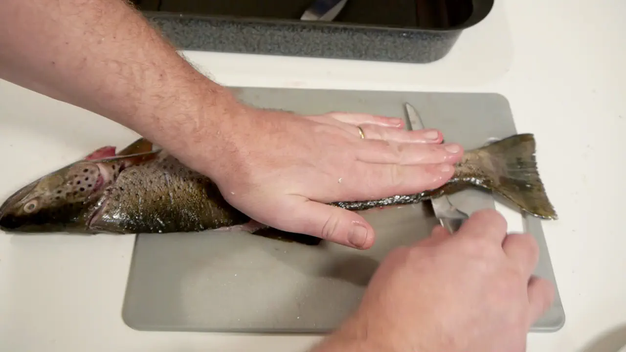 Den største forrskel på denne metode og mange andre, er at man skærer hele vejen igennem fisken til at begynde med. Det har den fordel at man ikke behøver at vide meget om hvordan fisken er opbygget. Man skal bare skære igennem.