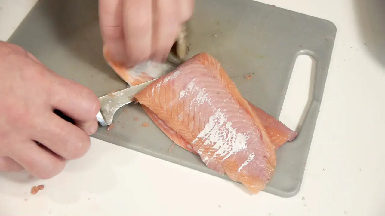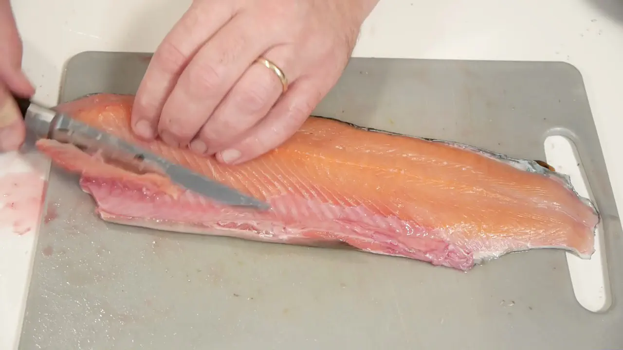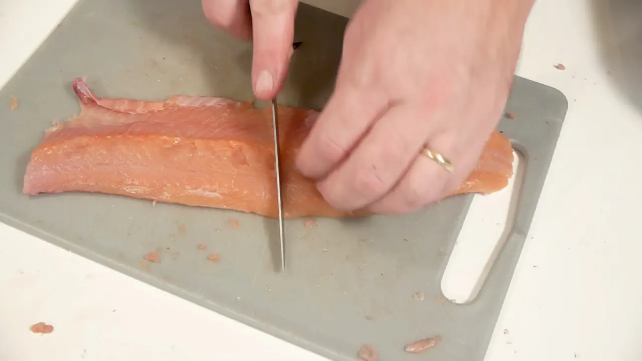 Bruger du en bred kniv skal du sørge for at bladet er vådt, så kniven ikke “hænger fast” i fiskekødet.