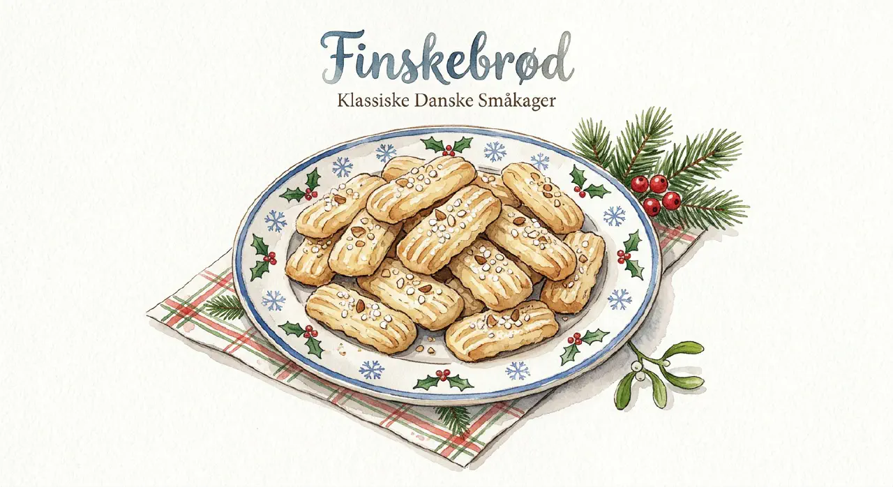 Finskbrød er klassiske danske mørdeejssmåkager — sprøde, smørmøre og enkle. Tre ingredienser: smør, mel og sukker. En fast del af den danske julesmåkagetradition.