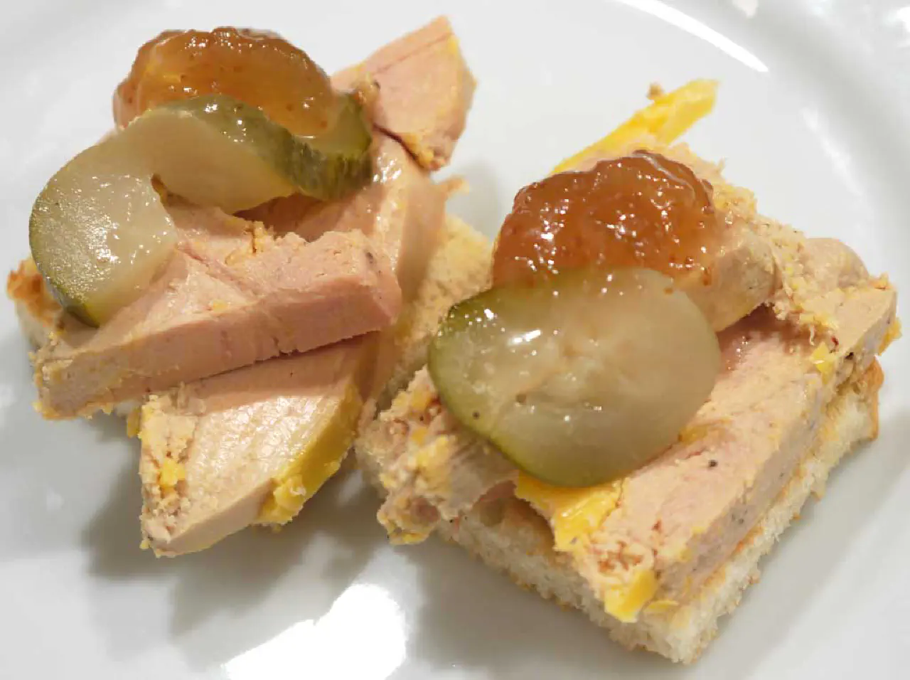 Færdig foie gras terrine med ribs og valnødde marmelade. © kvalimad.dk