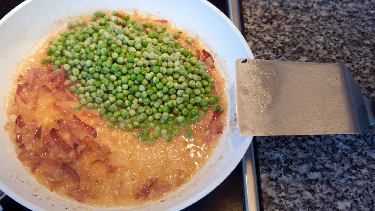 Tilsæt ærterne. Lad dem simre indtil de er møre. 2-5 minutter.