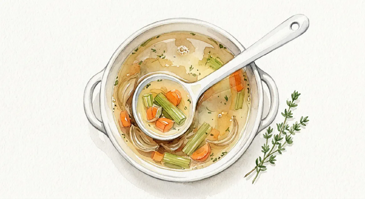 Grundsuppe er den danske betegnelse for en hjemmelavet fond — kogt på ben eller kød med urter, siet og skummet. Den er ikke en selvstændig ret, men fundamentet for andre supper og saucer. Koges den kraftigt ind og dybfryses, er der altid god smag ved hånden.