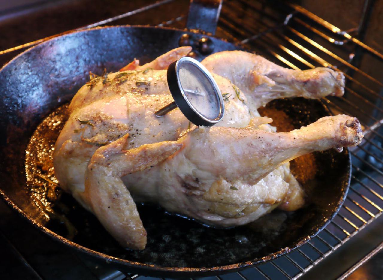 Sæt et stegetermometer i brystet på det tykkeste sted.
