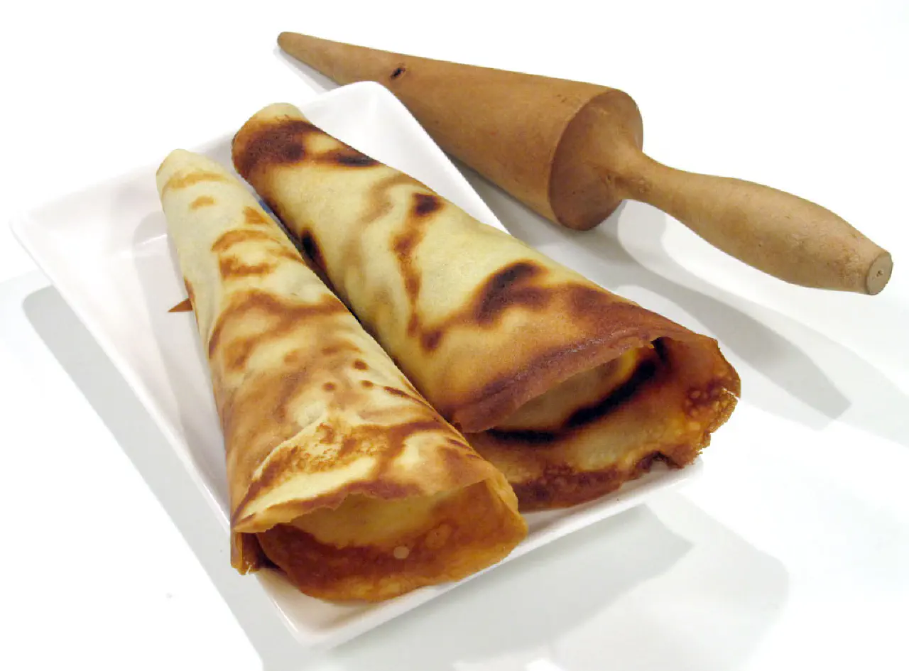 De fleste opskrifter jeg har set bruger en tuiles dej. Den syntes jeg er svær at få tynd nok. Den er heller ikke sød nok til min smag. Hvis pandekagerne ikke bliver tynde nok, så er de umulige at forme til kræmmerhuse uden at de knækker. Så løber isen ud :-S