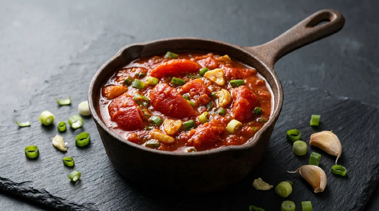 Hogao er en grundlæggende colombiansk tomat- og forårsløgsauce. Den bruges som base i utallige retter – bandeja paisa, arepas, empanadas, patacones og røræg. Saucen er enkel: tomater kogt ned med forårsløg, hvidløg og spidskommen til den er klumpet og tyk.