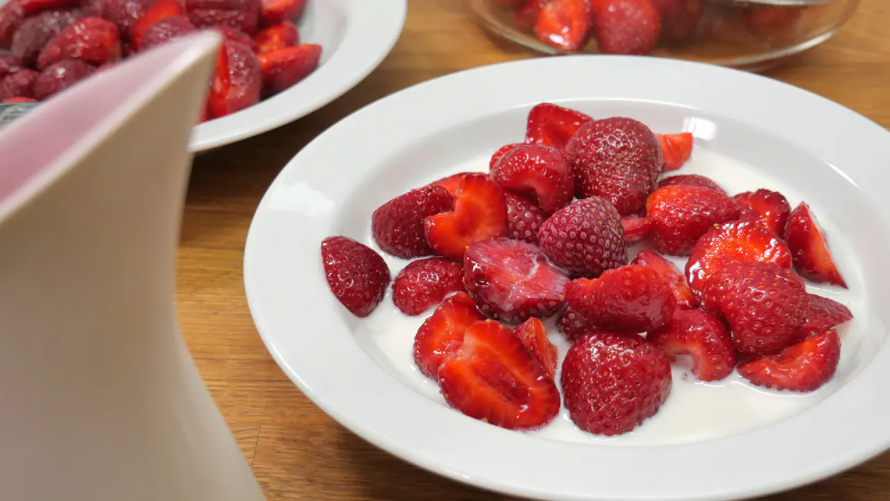 Jordbær med fløde på