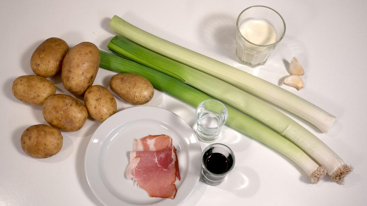 Ingredienser til kartoffel porre suppe © kvalimad.dk