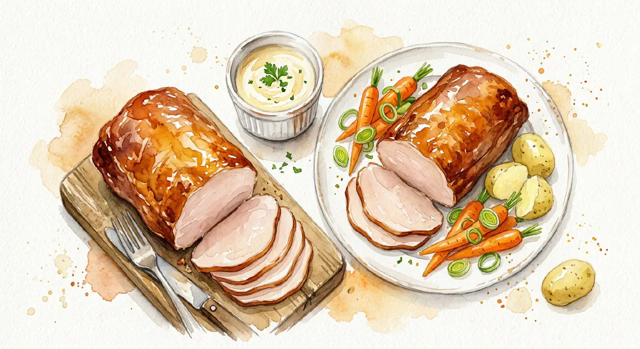 Hamburgerryg er en saltet og røget svineryg der kræver minimal tilberedning — den koges forsigtigt og trækker derefter i kogevæsken der giver fugten tilbage til kødet. For kraftig kogning giver tørt resultat; simring og hvile er nøglen. Server i tynde skiver med kogte grøntsager og rørt smør lavet på det salte kogevand.
