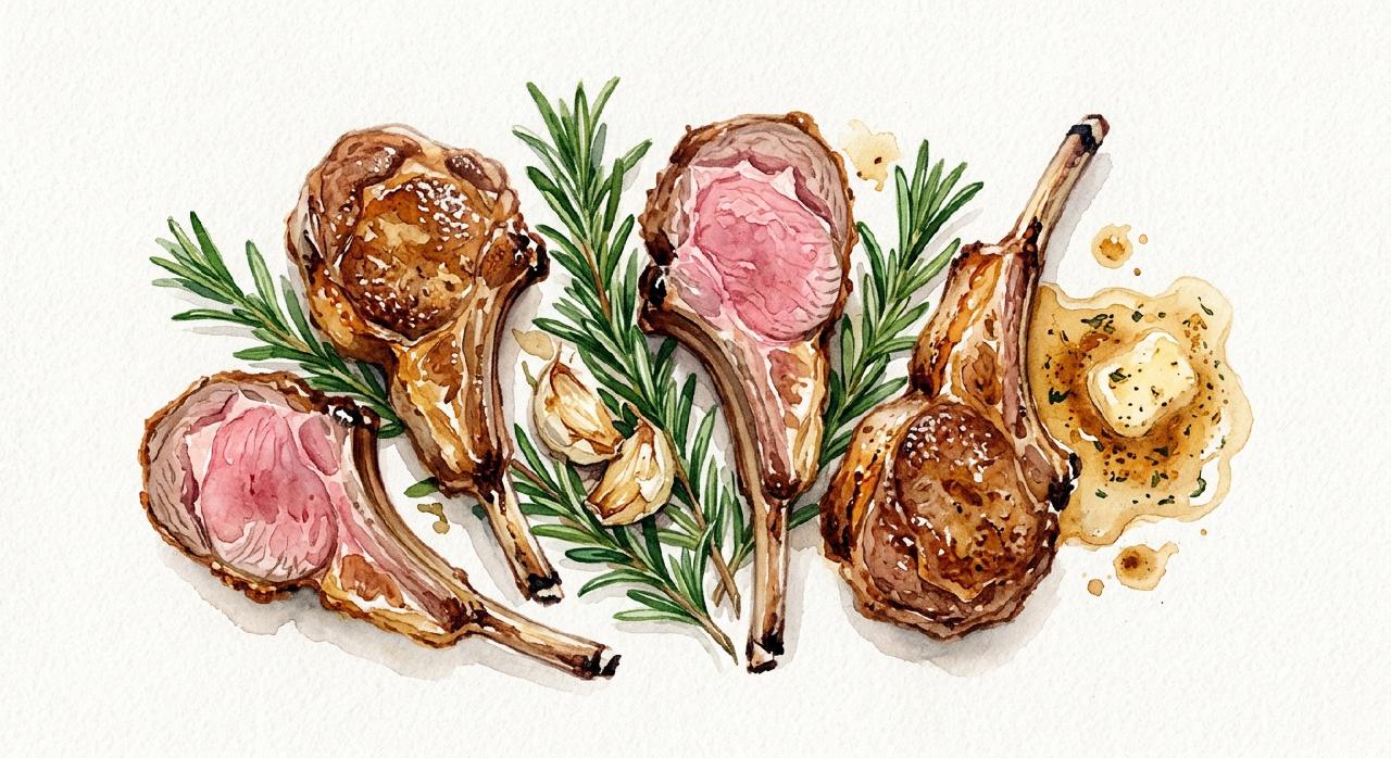 Lammekoteletter er hurtige at tilberede og giver et mørt, saftigt resultat hvis de steges ved høj varme og ikke oversteger. Metoden er enkel: feddene ned på en varm pande, derefter begge sider med smør og krydderurter. Beregn 2-3 koteletter per person afhængigt af størrelsen.