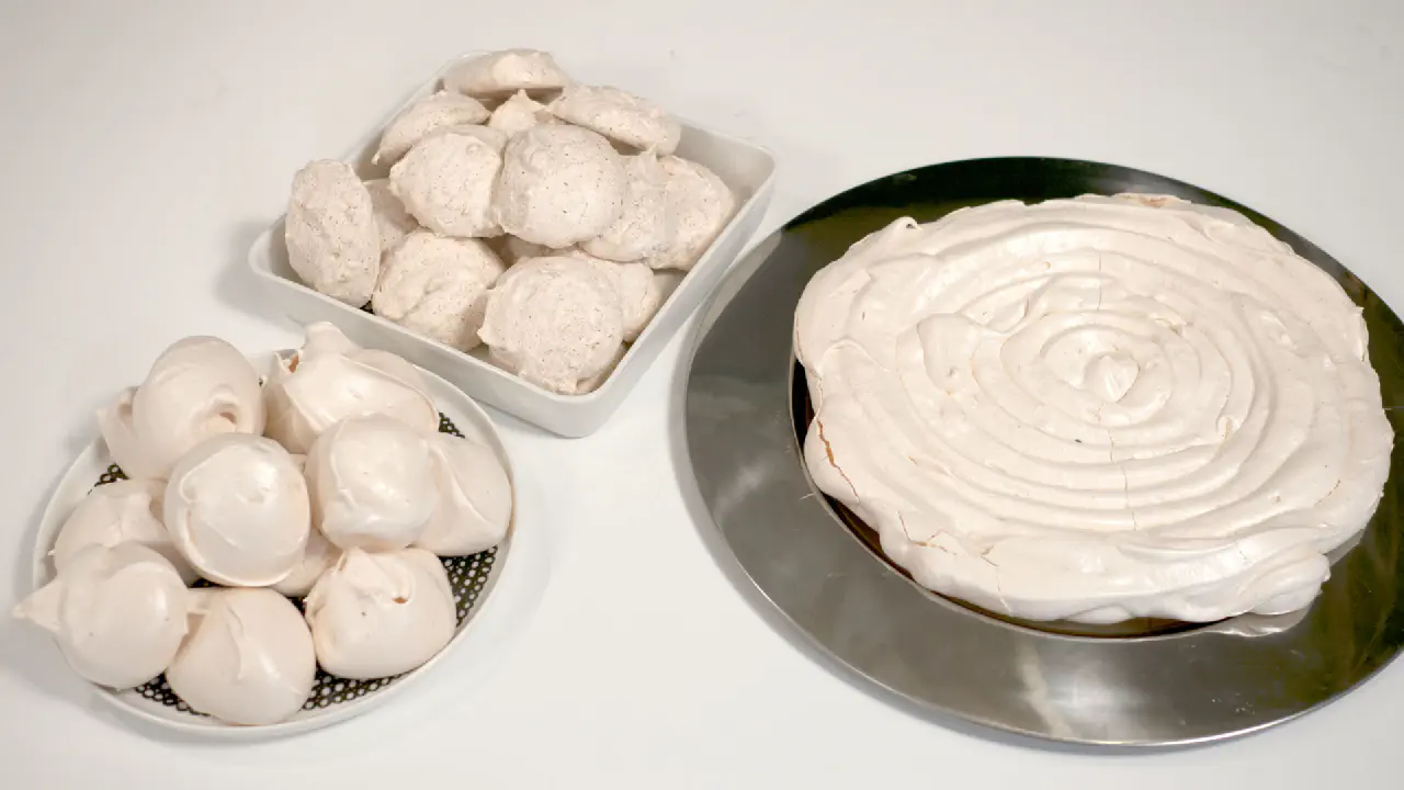 Opskrift med video - Marengsbunde, kokostoppe og marengskys er meget simple klassikere som man skal kunne. Ungerne elsker også at lave dem (hvis man har en røremaskine). De er samtidig meget nemme at lære udenad. Pavlova er en fantastisk men lidt ukendt kage baseret på marengs. Prøv den!