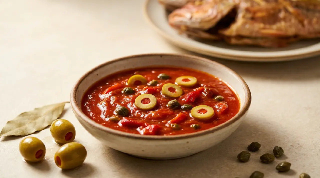 En puertoricanansk tomatsauce med grønne oliven, kapers og ristede røde pebre. Den opstod på Ladi’s Place i Salinas, Puerto Rico i 1938, tilpasset fra kanarisk køkken. Den traditionelle kombination er stegt hel red snapper (chillo frito), men den passer til enhver stegt eller grillet fisk og skaldyr.