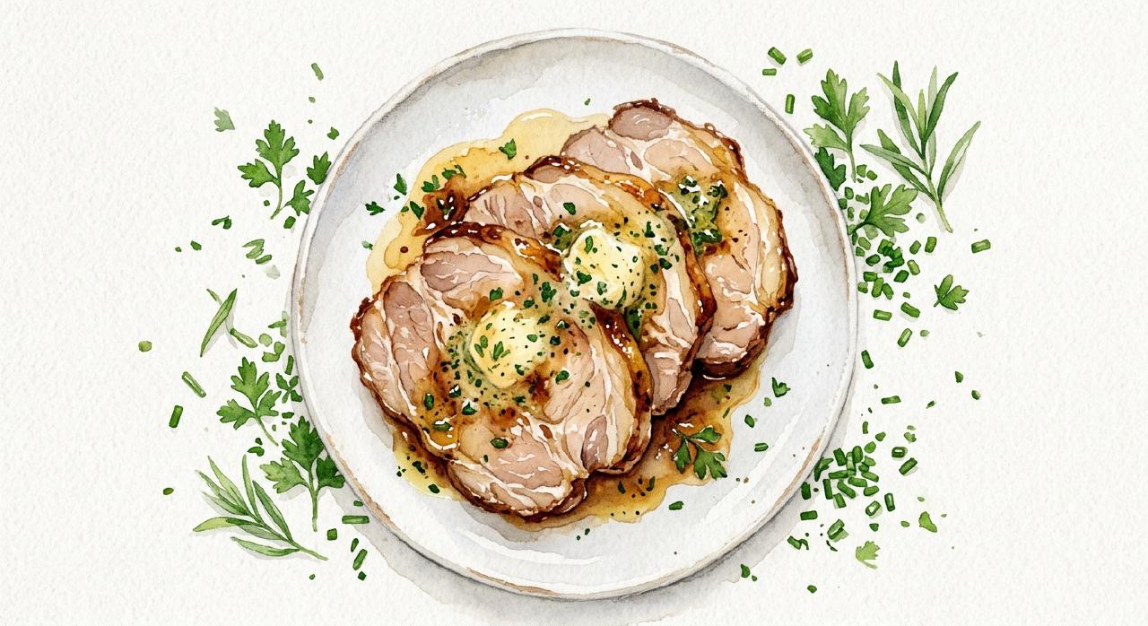 Nakkekam tilberedt med kryddersmør er en smagfuld og saftig ret. Smørret smelter ind i kødet under stegningen og holder det mørt. Indpakket i stegefilm eller folie passer stegen sig selv i ovnen, og bagte kartofler kan sættes ind samtidig.