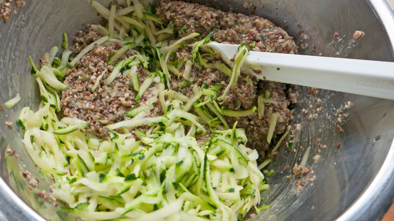 Revet squash/zucchini i dejen gør brødet mere saftigt. © kvalimad.dk