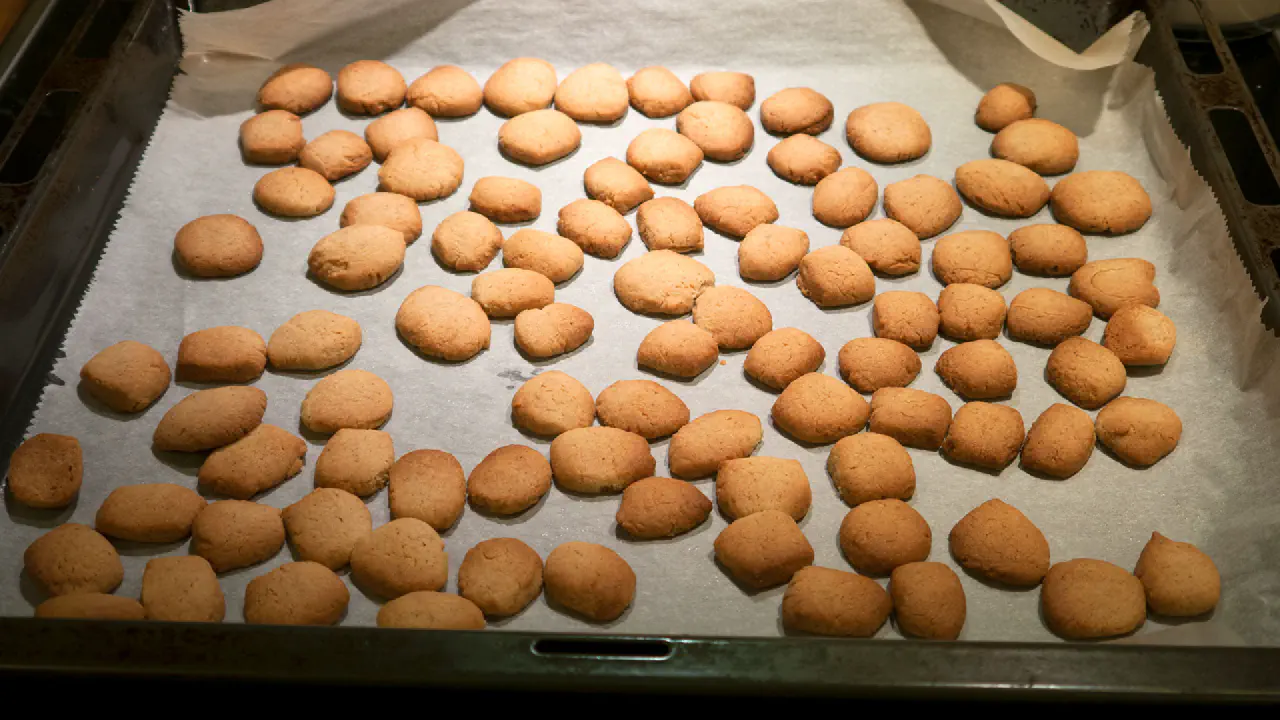 Bages ved 200 grader varmluft i 8-12 minutter. Indtil de begynder at få en gylden kant.