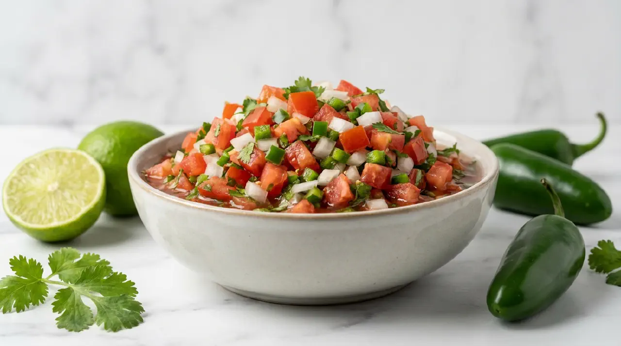 Pico de gallo er en rå mexicansk salsa af hakkede tomater, løg, chili, koriander og lime. Intet koges, intet blendes. Kvaliteten afhænger af tomaternes modenhed og smagens balance.