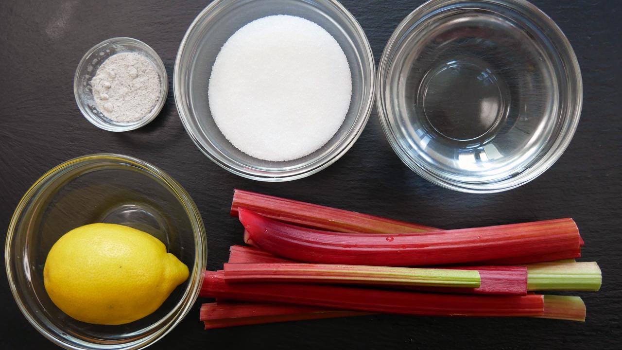 Ingredienserne til råsyltede rabarber © kvalimad.dk
