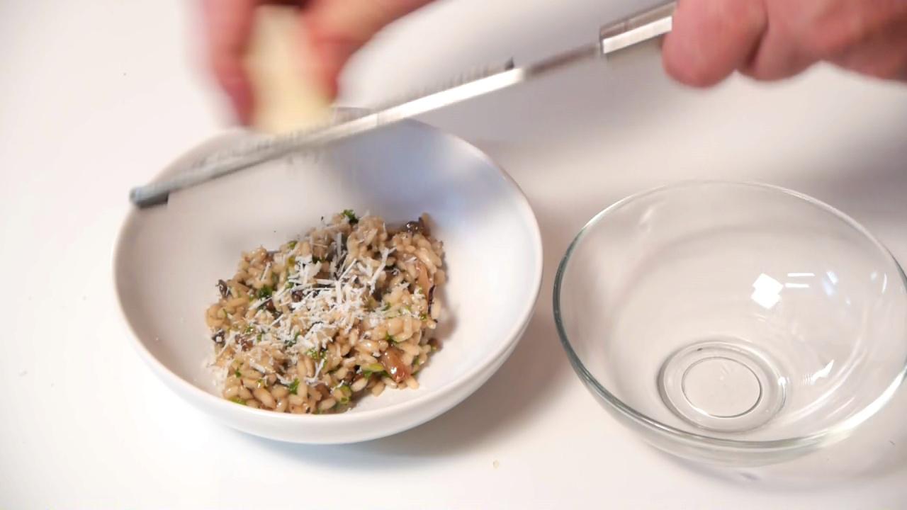 Opskrift med video - Risotto kan laves på mange måder. Min favorit er med svampe. Det er et god tilbehør til næsten alting. Stegte grøntsager, en god bøf, fisk. Risottoen er ligeglad. Den tilpasser sig bare.