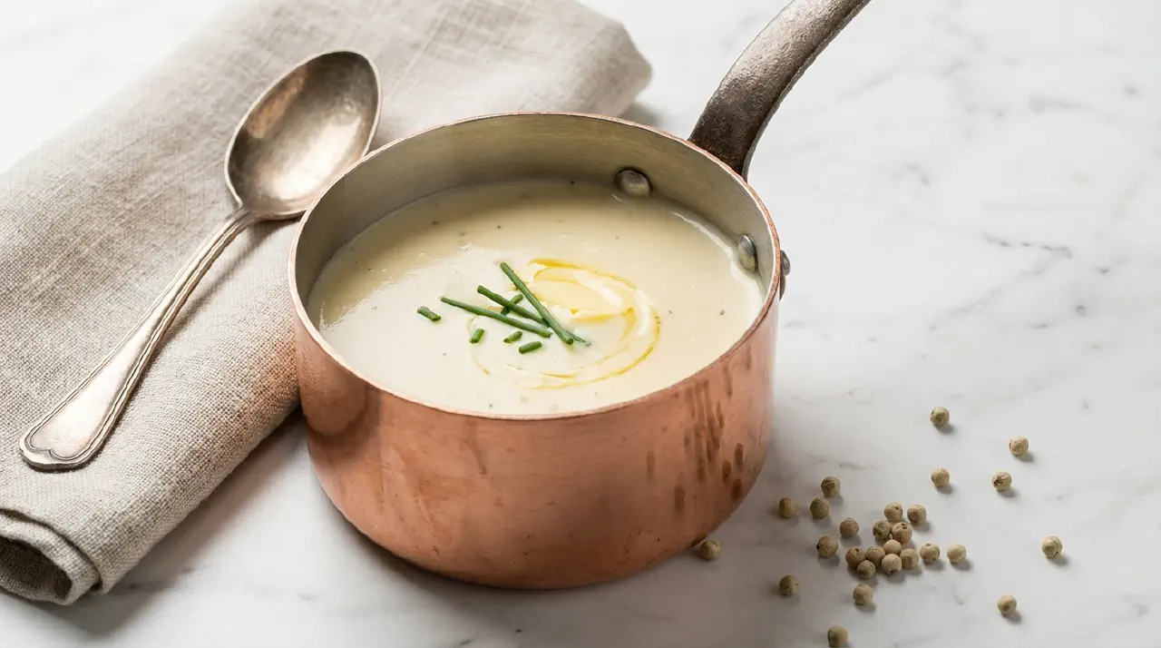 - Smag let til med salt og hvid peber. Si gennem en finmasket si. Sæt til side.