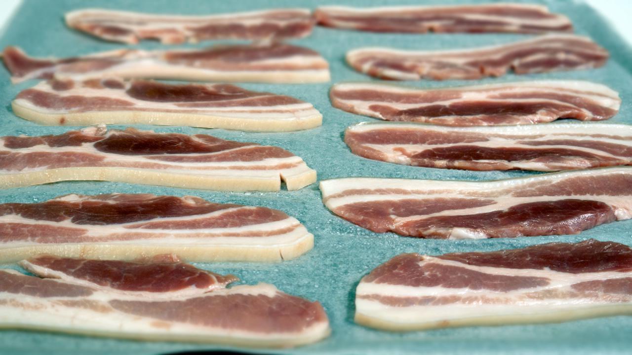 Normal bruger man maveflæsket fra en gris til denne ret. Man kan også sagtens bruge ribbensstykket - hvis man skærer benene fra.