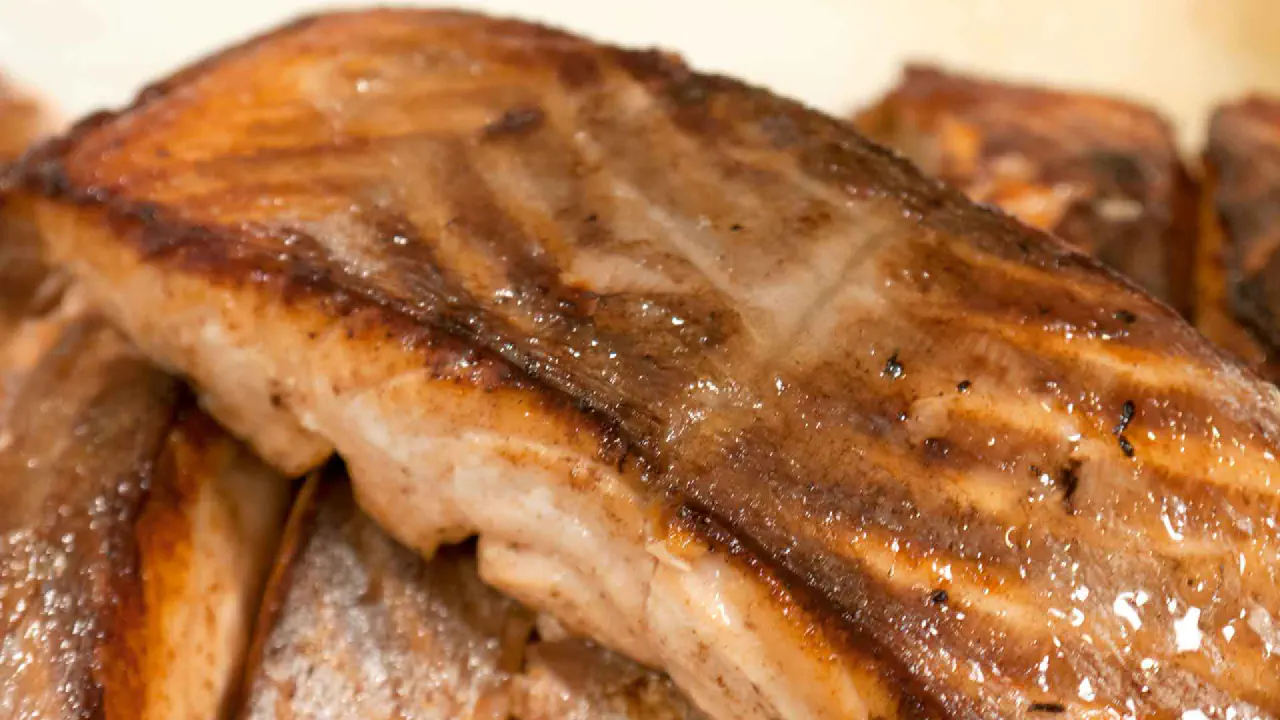 Fisken har indbygget stegetermometer. Der kommer en lys kant som fortæller når den er klar til at vende. Når kanten er ca. 1 cm hele vejen rundt så skal der vendes.