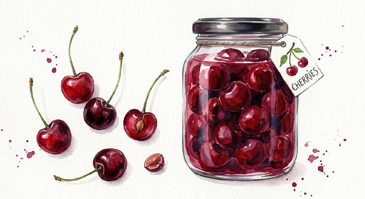Syltede kirsebær er en klassisk konserves med mange formål - til kirsebærsauce, kagepynt og som dessert. Det karakteristiske ved opskriften er brugen af kirsebærkernerne fra stenene, der giver en svag, naturlig mandelsmag til syltetøjet.