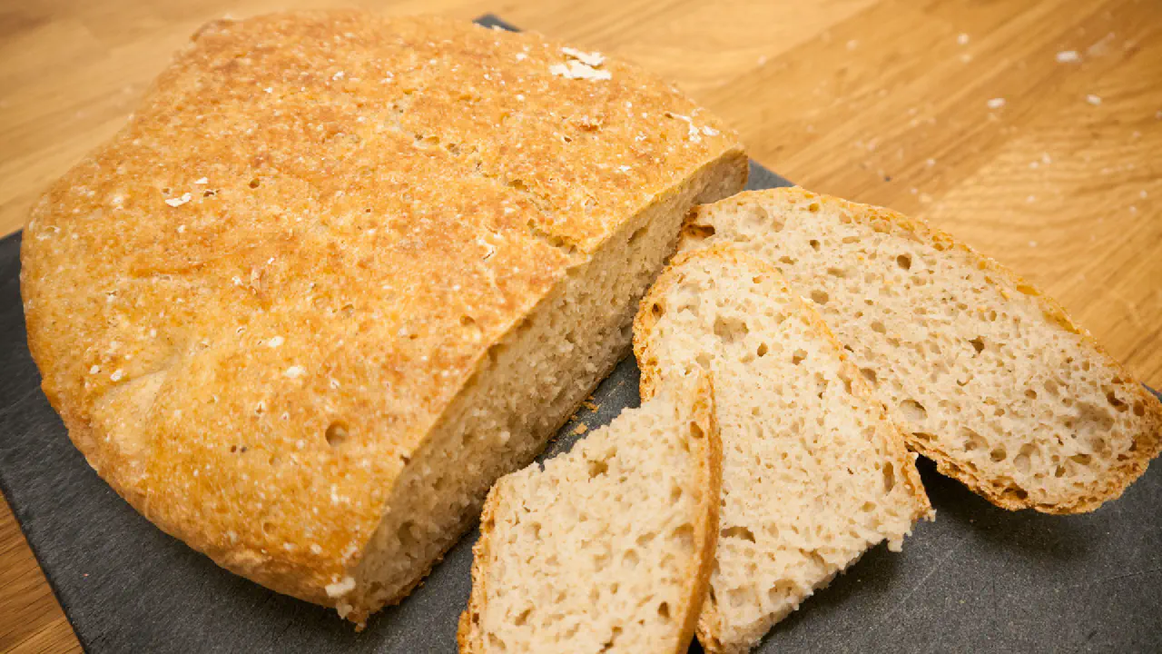 Du skal bage brødet i en gryde inde i ovnen. Grydens låg holder dampen fra dejen inde. Så varer det længere om at skorpen sætter sig og bliver hård. Det gør at brødet hæver mere op inde i ovnen.
